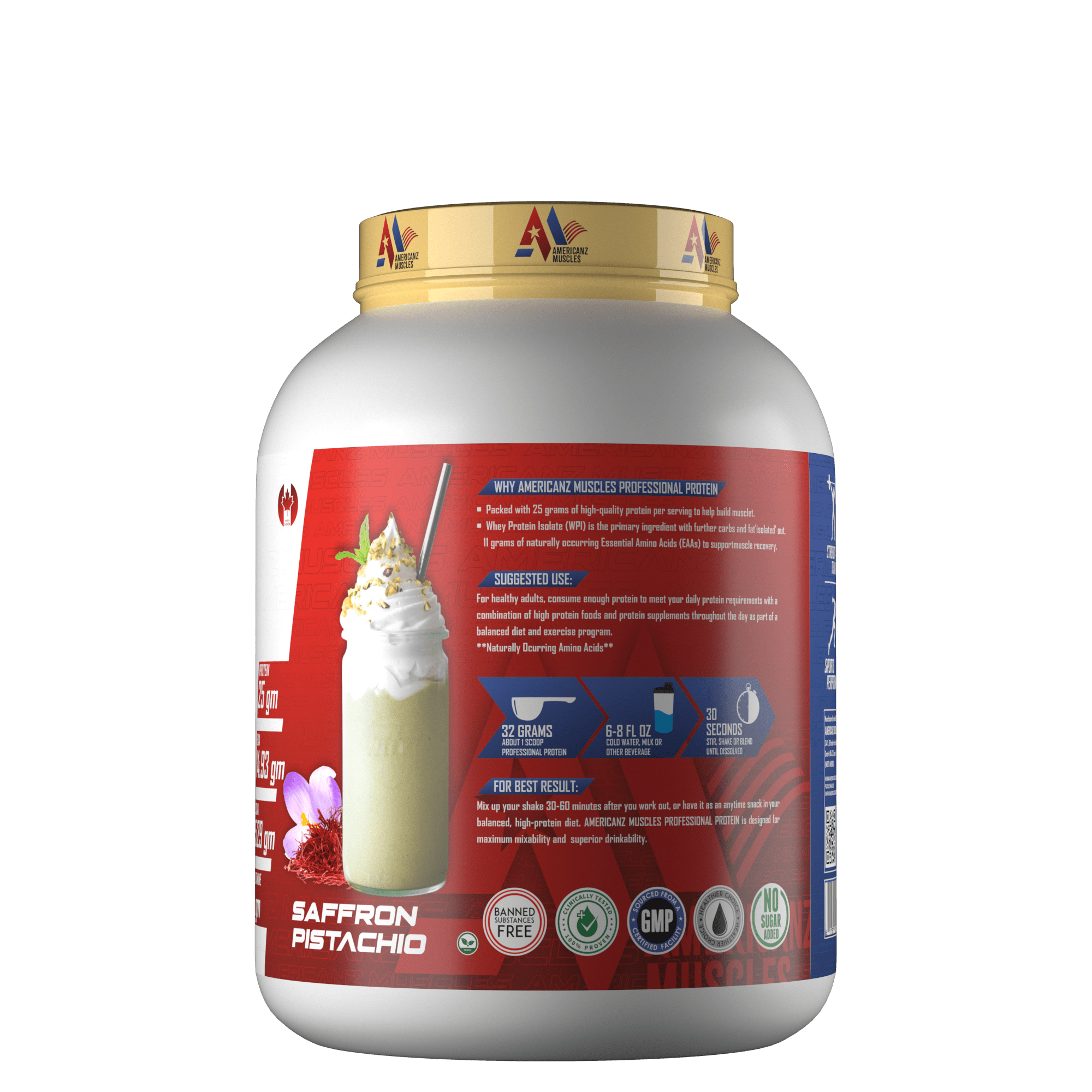 Americanz Muscles Professional Protein is a rich source of all the essential amino acids, especially leucine, which are needed for natural muscular development. Whey proteins are high in Branch Chain Amino Acids (BCAA’s) and Glutamic acid. it helps facilitate muscle recovery after hard training or sport.