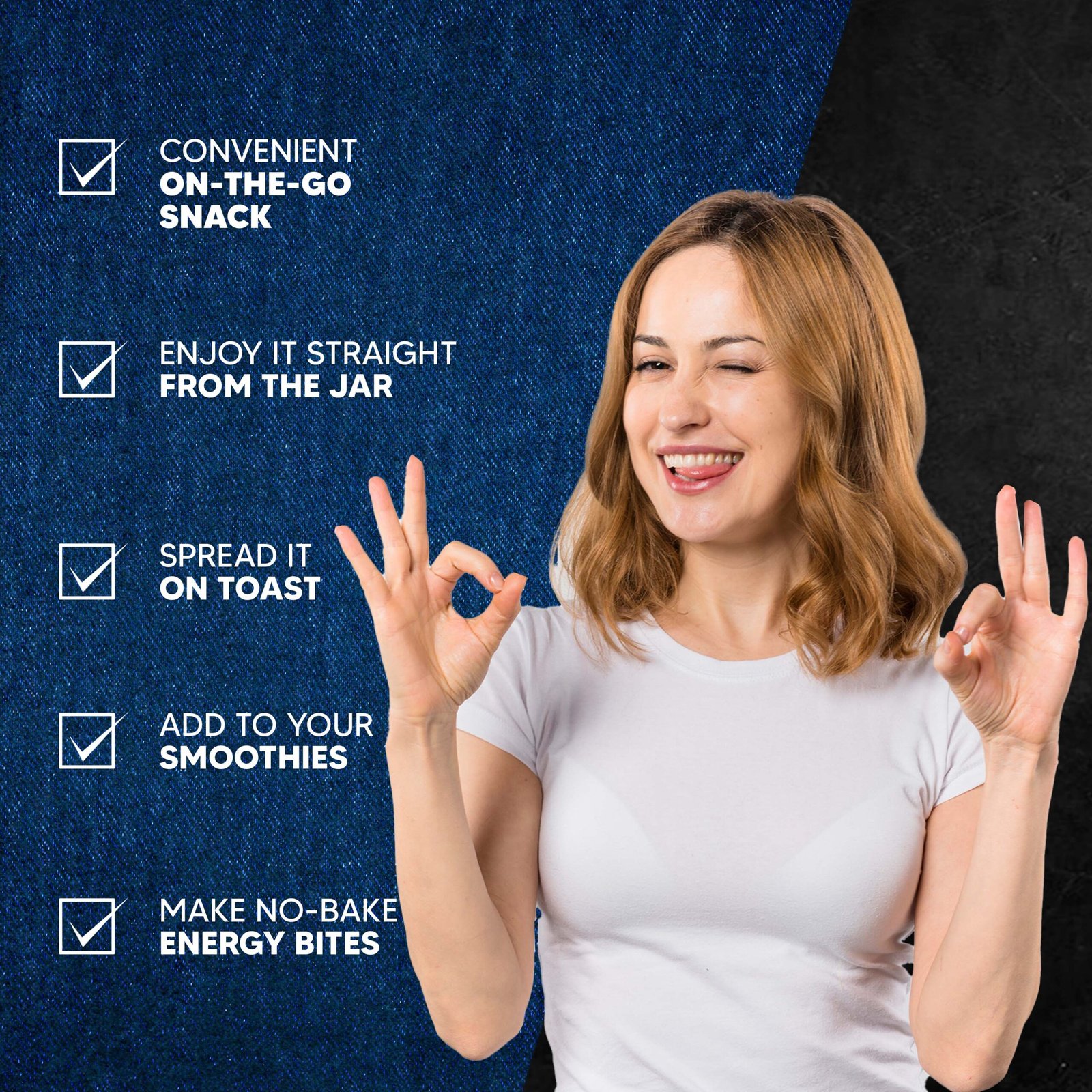 A peanut butter jar is easy to carry in your bag or stash at work. Having a good combination of fiber (2g per serving) and protein (8g per serving), peanut butter keeps you feeling fuller for longer, so you eat less overall. Peanut butter helps fight cravings, so you’re less likely to snack or succumb to hunger cravings throughout the day. Can help bridge the gap between meals when you’re hungry. Starting the day with peanut butter can help kick start your metabolism, and give you the fuel to get going.