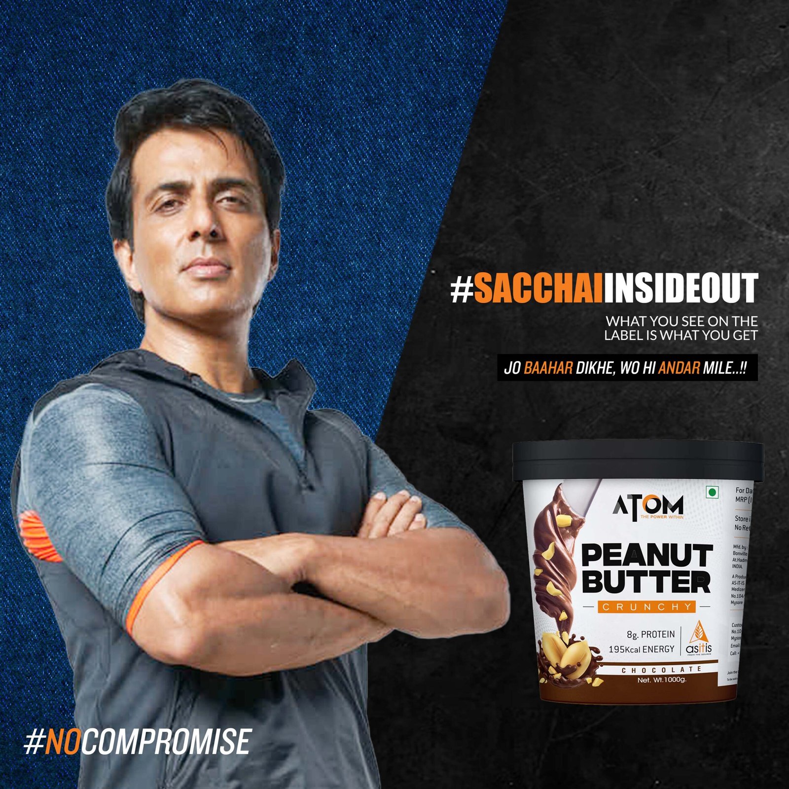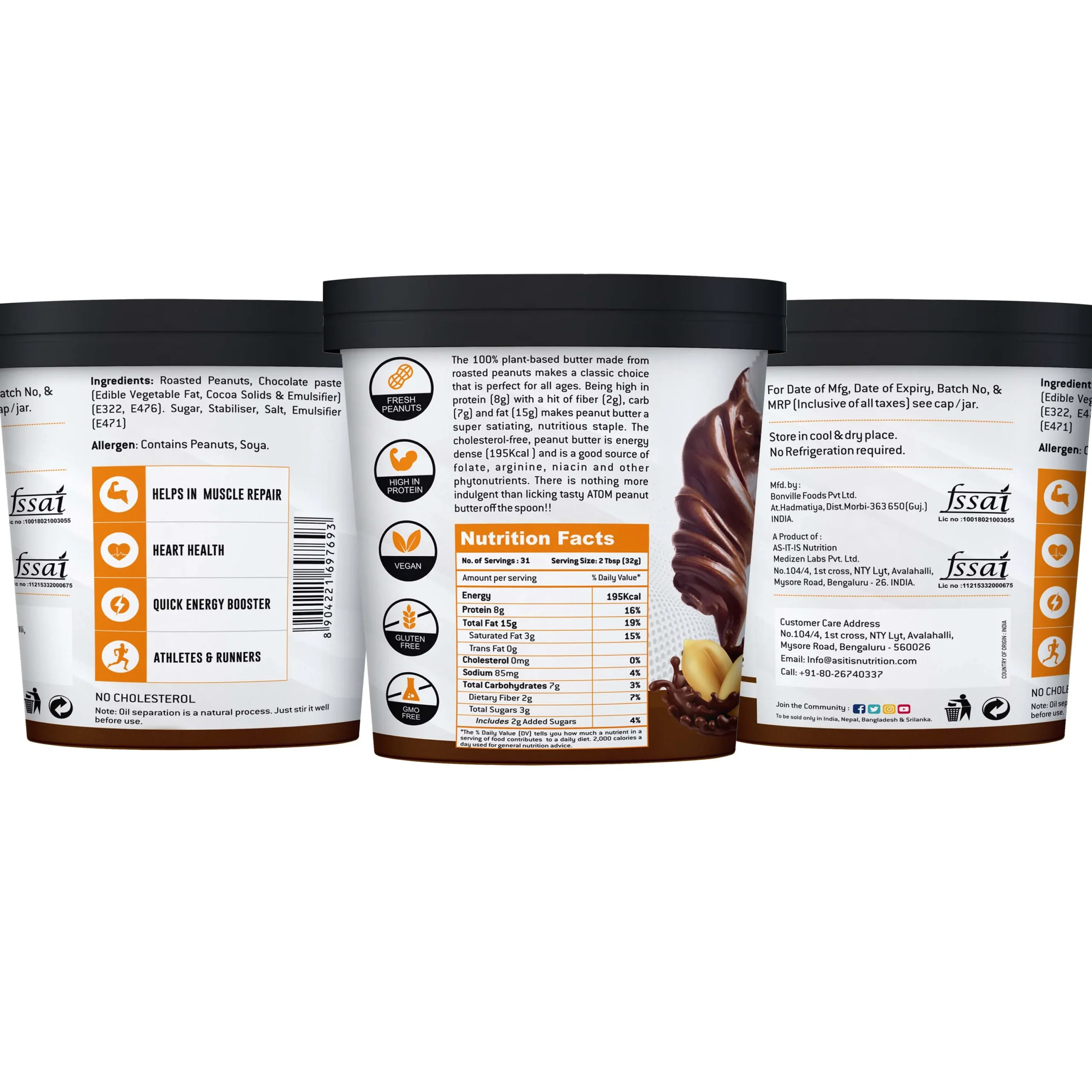 ATOM Peanut butter is made from high-quality, fresh, roasted peanuts that are selectively hand-picked. A small serving of peanut butter can give you a calorie-filled, healthy boost of a good amount of protein, fiber, and fats that provide you with the energy required to kick start the day. The ready-to-consume, easy, convenient, caffeine-free, stimulant-free peanut butter makes it an on the go-to snack option that can give you the energy boost you require anytime, anywhere.