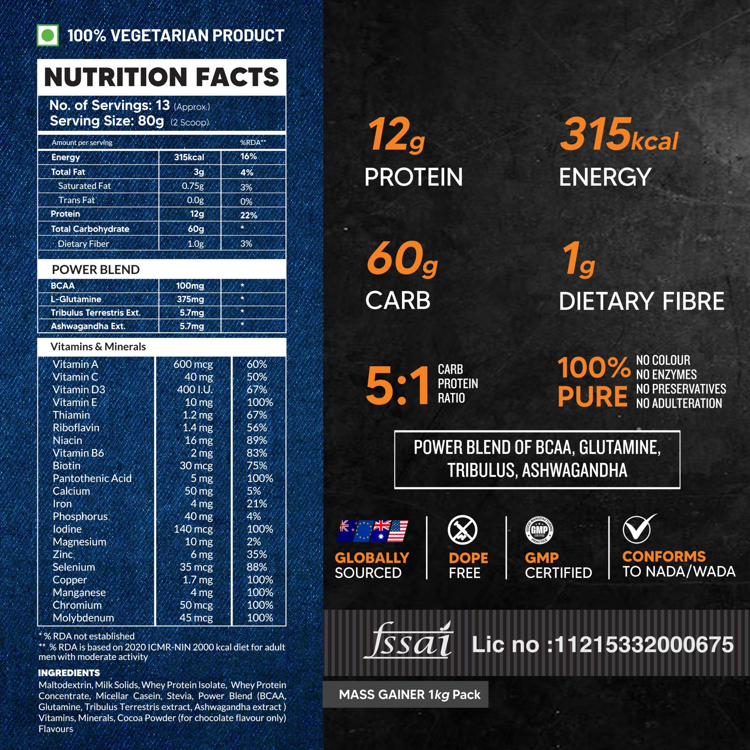 A mass gainer is a high-calorie supplement designed specifically to help individuals gain mass. A mass gainer offers a specific blend of carb to protein, together with multivitamins, minerals, enzyme blend. Mass gainer supplement makes your job of getting a larger amount of calories and nutrients, without having to eat large amounts of food (which is practically not possible for someone having a low appetite or high activity level.