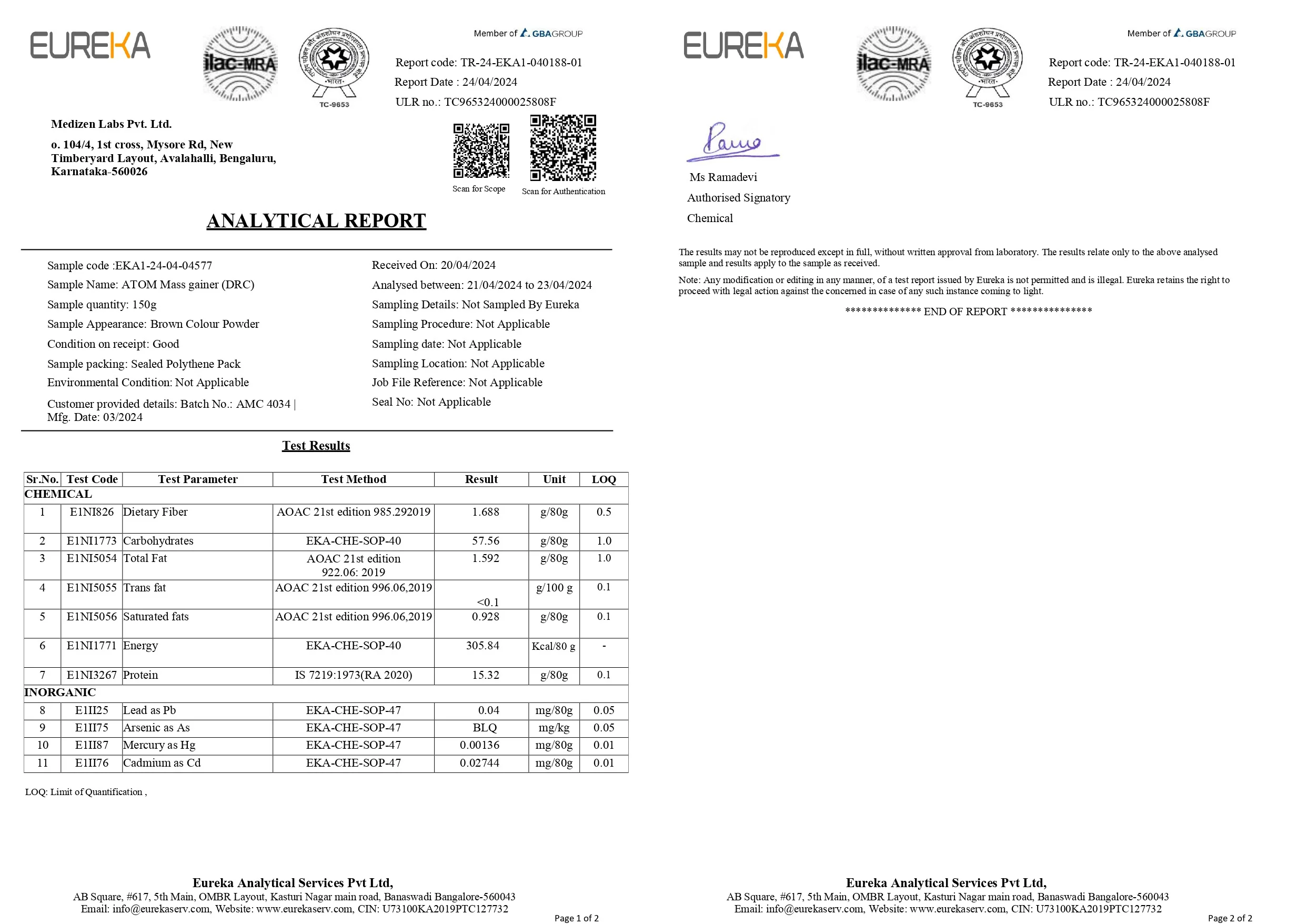 ATOM mass gainer is ideal for consumption within 18 months from the date of manufacturing.