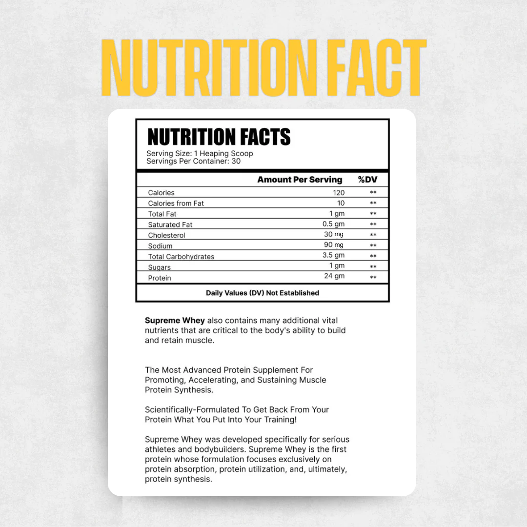 Supreme Whey is the first scientifically-based protein ever developed. Supreme Whey is protein and is crucial to the body’s ability to build quality muscle tissue and enhance strength.
