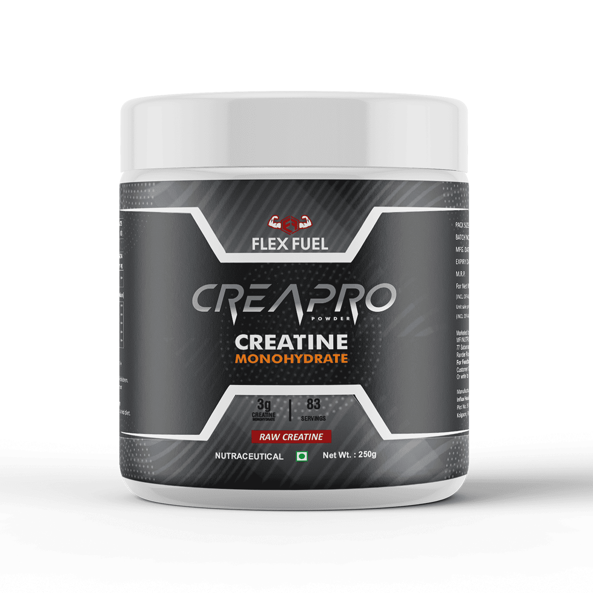 Power up your workouts with FlexFuel Nutrition Creatine Monohydrate, the ultimate fuel for strength, endurance, and muscle growth. This pure, unflavored creatine delivers 3g per serving, scientifically proven to enhance power output, accelerate recovery, and support lean muscle gains.