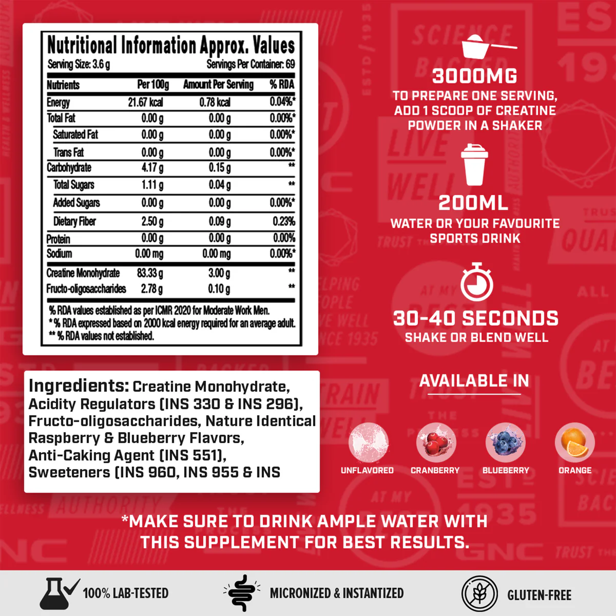GNC Creatine Monohydrate 3000mg Flavoured