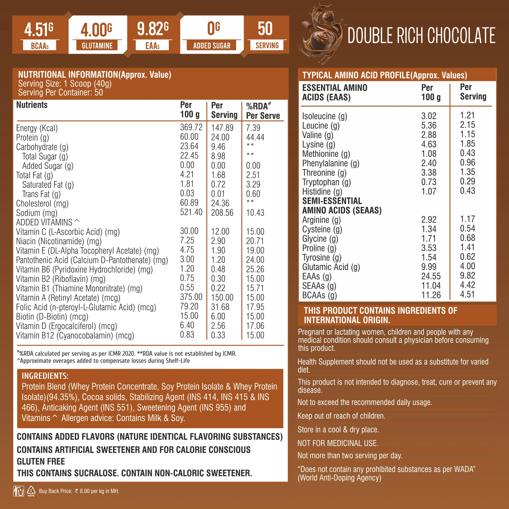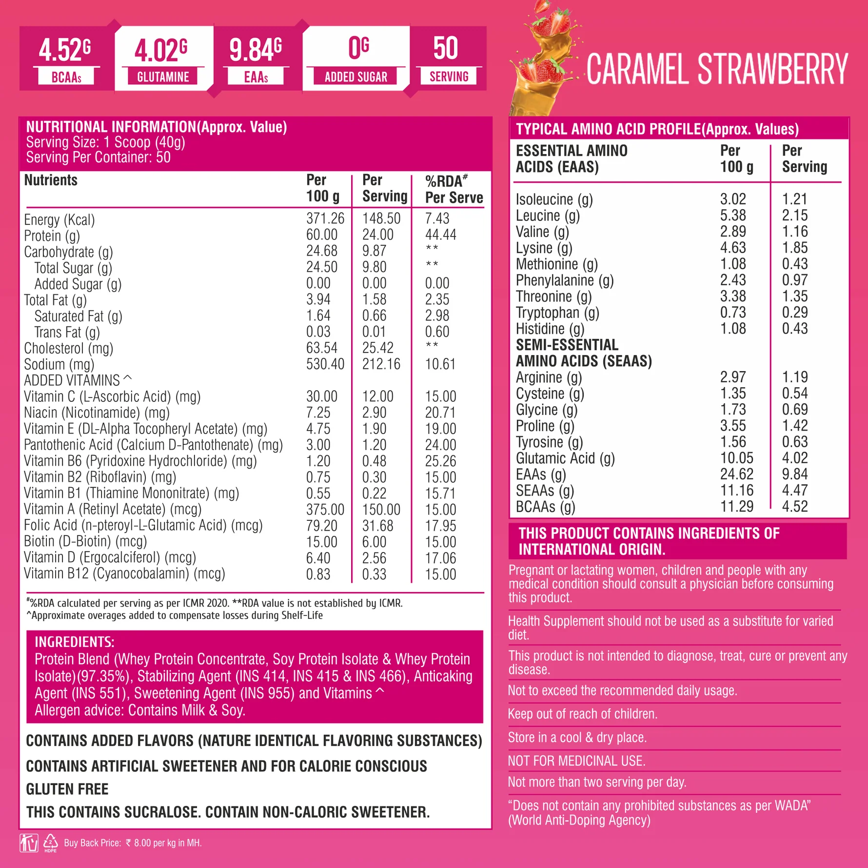 Glutamine – 4.00g to Boost Muscle Growth and Enhance Recovery: Glutamine is a critical amino acid that aids in muscle recovery, improves immune function, and reduces muscle breakdown. With 4.00g per serving, this protein supplement ensures optimal muscle repair and supports overall gut health, which is vital for nutrient absorption.