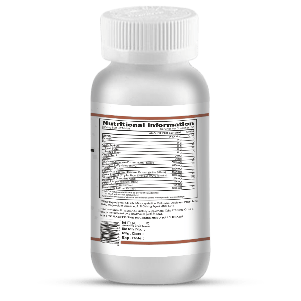 • It contains 500mg Milk Thistle, 100mg Turmeric Extract, 100mg Amla Extract and other super ingredients like Dandelion root extract, Black pepper extract and Vitamin C