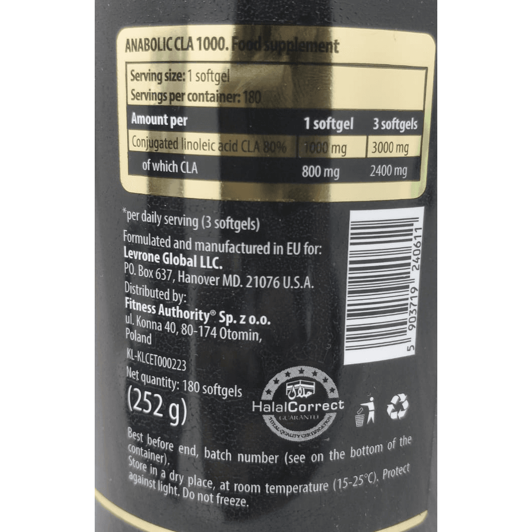 Kevin Levrone Anabolic CLA 1000 is a high-quality conjugated linoleic acid (CLA) supplement designed to help you achieve your fitness goals by promoting fat loss while supporting lean muscle mass. Each bottle contains 180 softgels, providing you with a convenient and effective way to incorporate CLA into your daily routine.