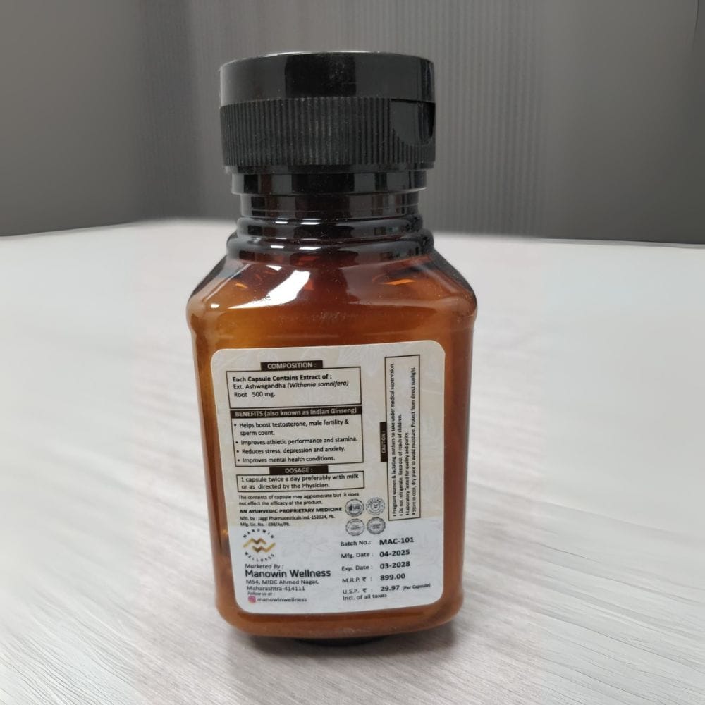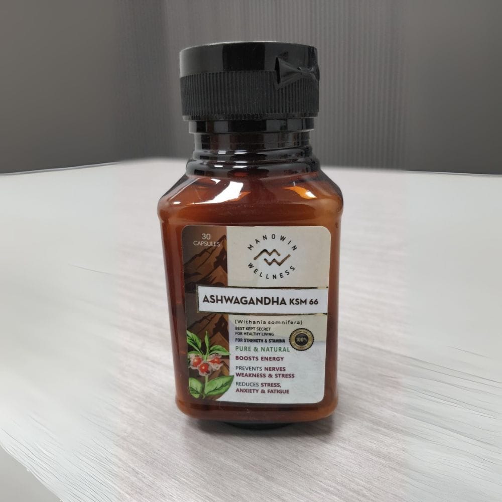 Manowin Wellness Ashwagandha KSM-66 Capsules – 30 Veg Capsules