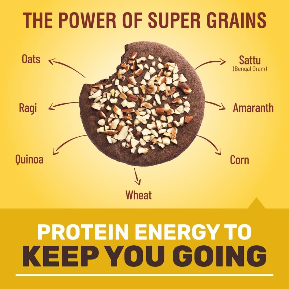 GOODNESS OF GRAINS: Our cookies are made with the goodness of 7 grains Oats, Ragi, Quinoa, Corn, Wheat, Bengal gram, and amaranth. This keeps you full and helps you curb your cravings.