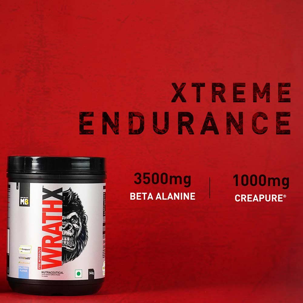 MuscleBlaze Pre Workout WrathX, the most ballistic and potent potion for serious bodybuilders looking for monstrous gains! With unique proprietary ingredients, WrathX is for you, so now douse your workout with Xtra energy, Xtra focus, Xtra pump, and Xtra strength gains! Enjoy it in a refreshing fruit fury flavour!