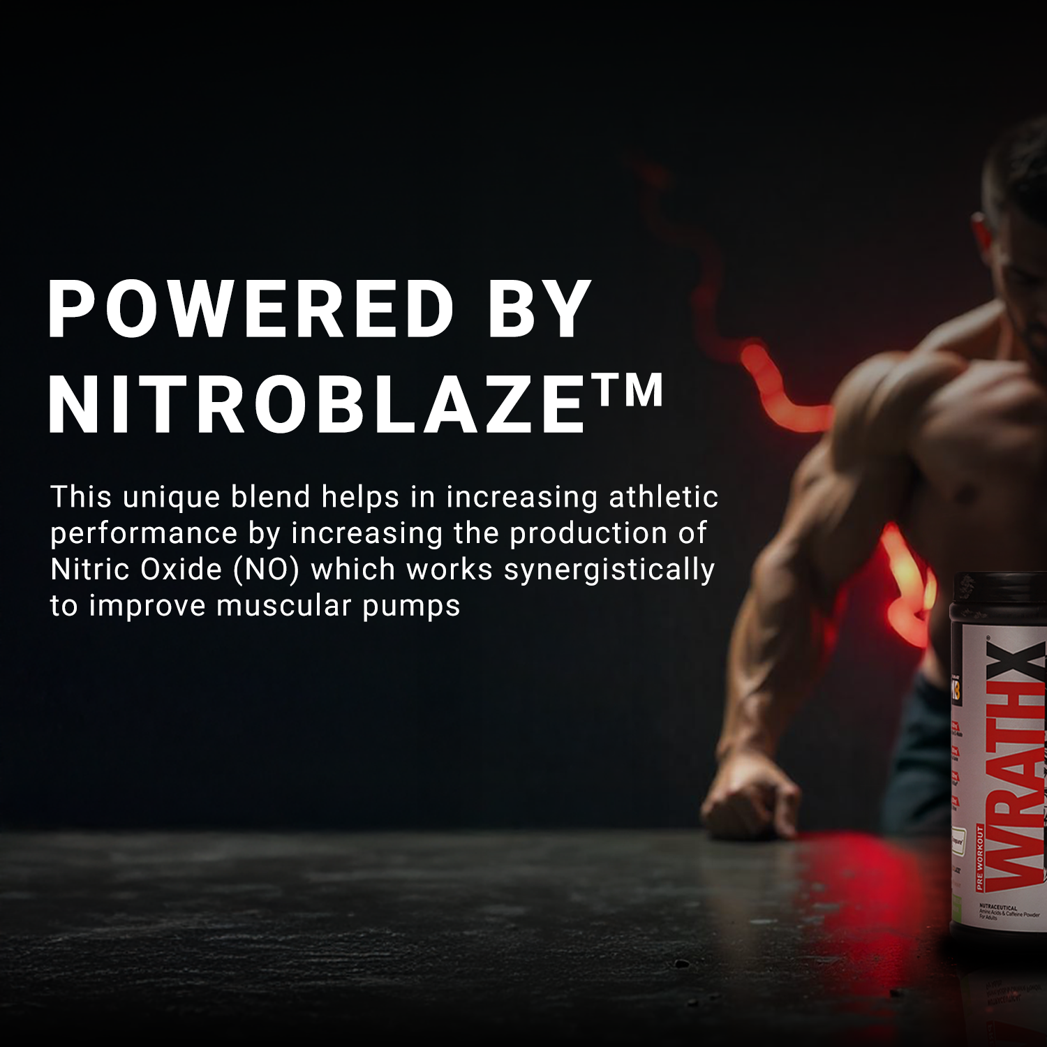 MuscleBlaze Pre Workout WrathX, the most ballistic and potent potion for serious bodybuilders looking for monstrous gains! With unique proprietary ingredients, WrathX is for you, so now douse your workout with Xtra energy, Xtra focus, Xtra pump, and Xtra strength gains! Enjoy it in a refreshing fruit fury flavour!