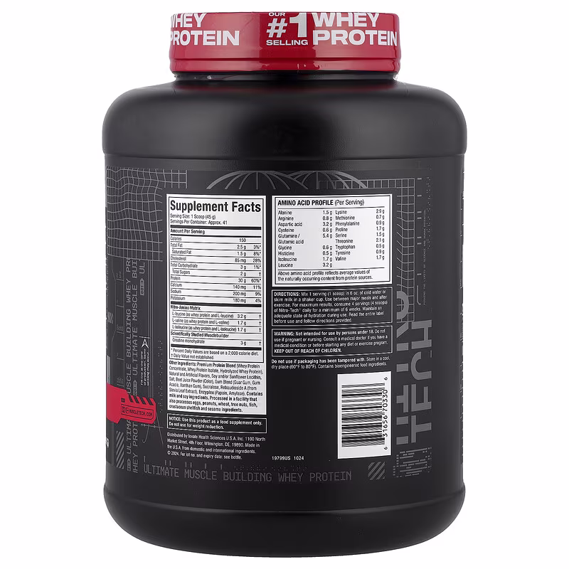 The whey protein in Nitro-Tech® has been filtered using multi-phase filtration technology for less fat, lactose and impurities than cheaper protein sources. Furthermore, Nitro-Tech®is manufactured according to cGMP standards, as is required for all dietary supplements to ensure quality and integrity.