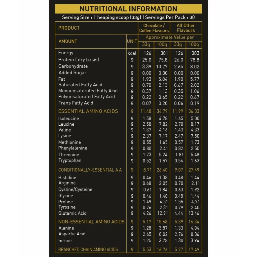 • Ultra Filtration method is used to extract the Whey Protein. Customers should mix 1 scoop (33g) in 180-200 ml water for best results.