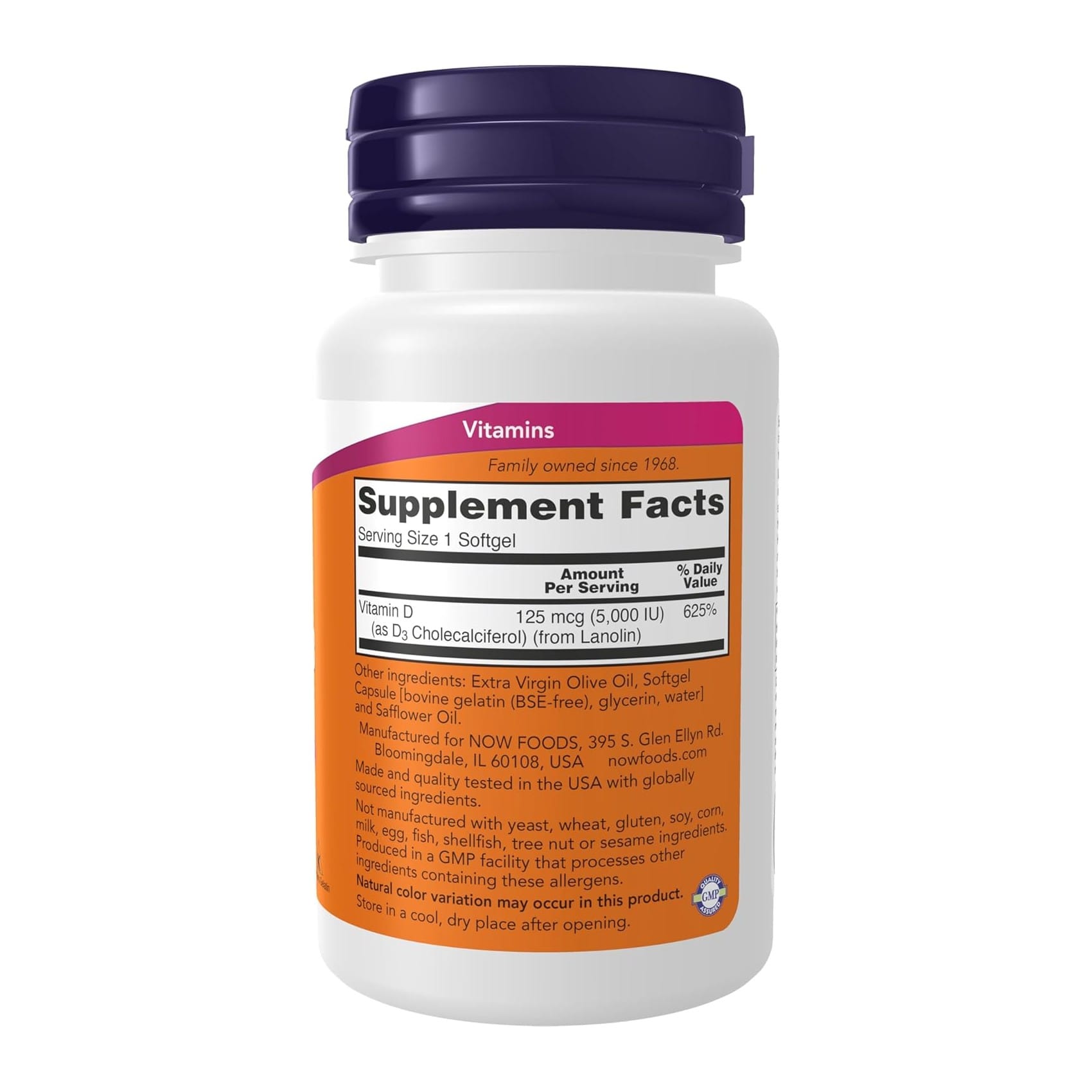 NOW® Vitamin D-3 softgels supply this key vitamin in a highly-absorbable liquid softgel form. Vitamin D is normally obtained from the diet or produced by the skin from the ultraviolet energy of the sun. However, is it not abundant in food. As more people avoid sun exposure, Vitamin D supplementation becomes even more necessary to ensure that your body receives and adequate supply.