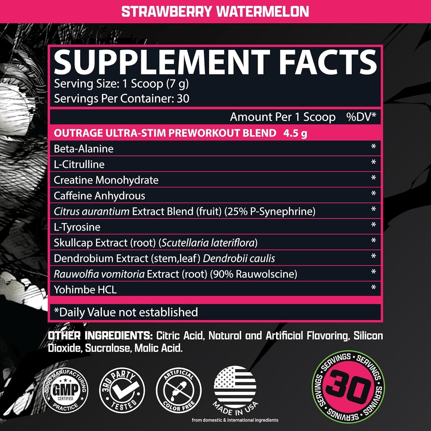 Unleash unstoppable power and performance with OUTRAGE – the first-ever ULTRA STIM pre-workout designed to push you beyond human limitations. Engineered for relentless intensity – this explosive formula combines cutting-edge ingredients to deliver mind-blowing energy, laser focus and seemingly endless endurance. OUTRAGE isn’t just fuel – it’s a catalyst for transformation. If you’re ready to dominate every workout and evolve into your ultimate form – there’s only one choice: grab OUTRAGE today.
