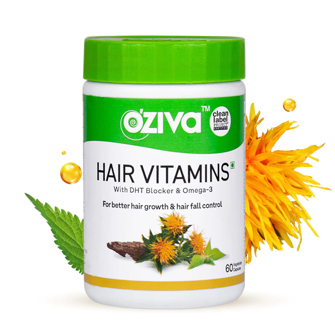Facing hair fall? Manage it naturally! OZiva Hair Vitamins is a clinically proven advanced formula to block DHT, an enzyme that could lead to pattern baldness. These hair vitamins help reduce hair fall, support hair growth, and provide daily hair nutrition.