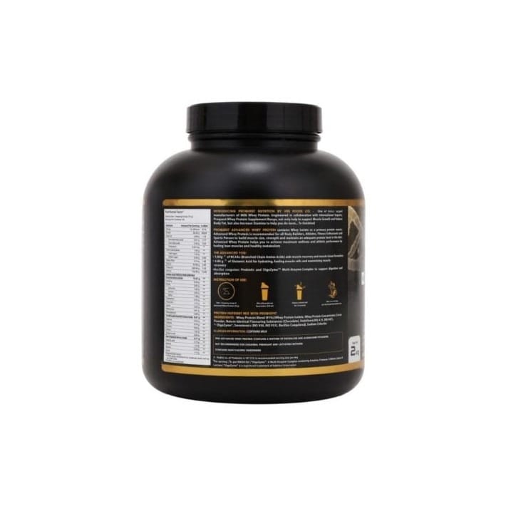 Proquest Advanced Whey Protein contains whey isolate as the primary protein source. A superior blend of whey protein isolate and whey protein concentrate helps in increasing lean muscle mass . Each serving (33g) provides 26.4g fast absorbing protein ,7g of BCAA aids muscle tissue formation , 4.6g of Glutamine & Glutamic acid for hydrating , fueling muscle cells and maximising recovery ,26 essential vitamins and Minerals releases optimum and steady amounts of protein for bodybuilding.Enriched with probiotic ,boost immunity and DigeZyme® , a multi-enzyme blend helps in digestion & absorption of protein, carbs & fat in the body .