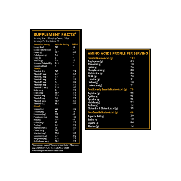 • 4.6 g of Glutamine & Glutamic acid g helps in faster muscle recovery, increase muscle growth and improves immunity