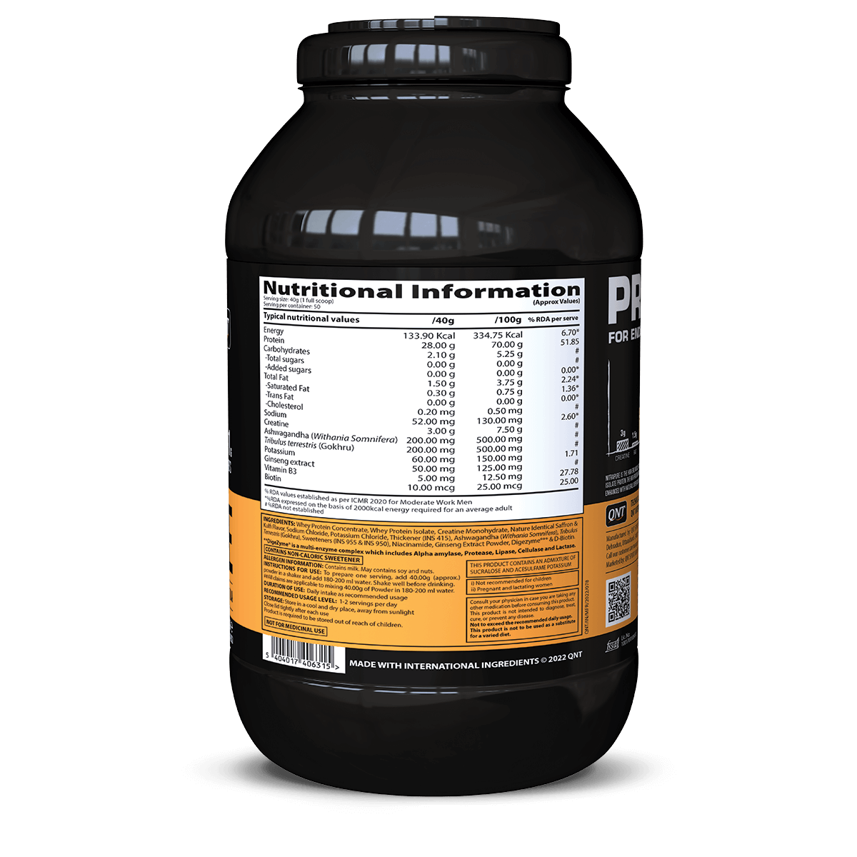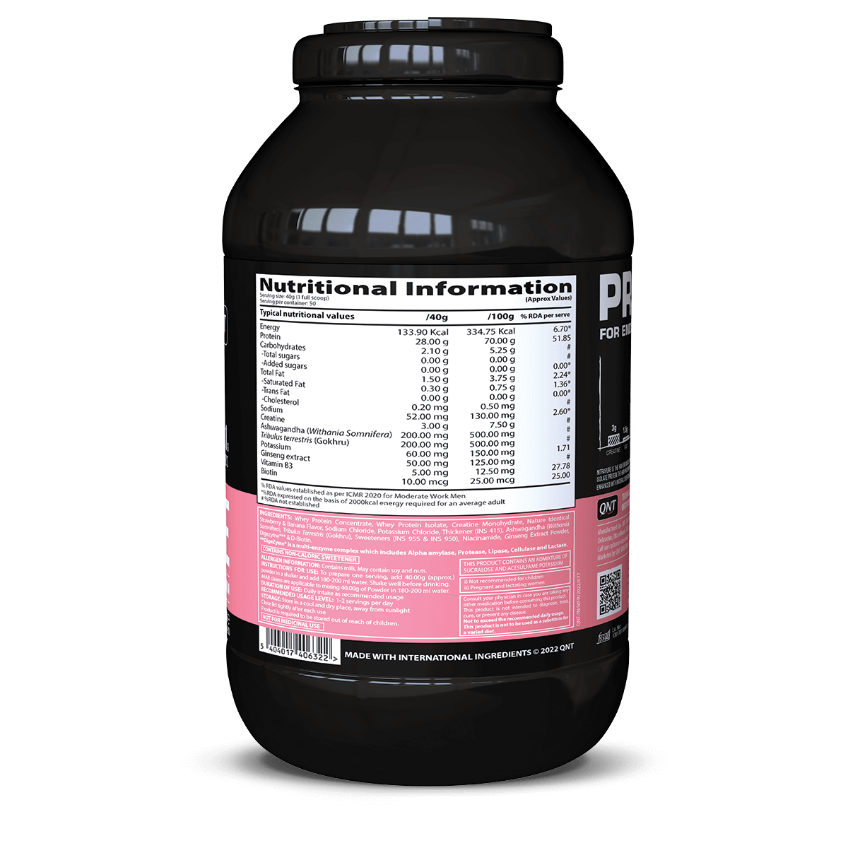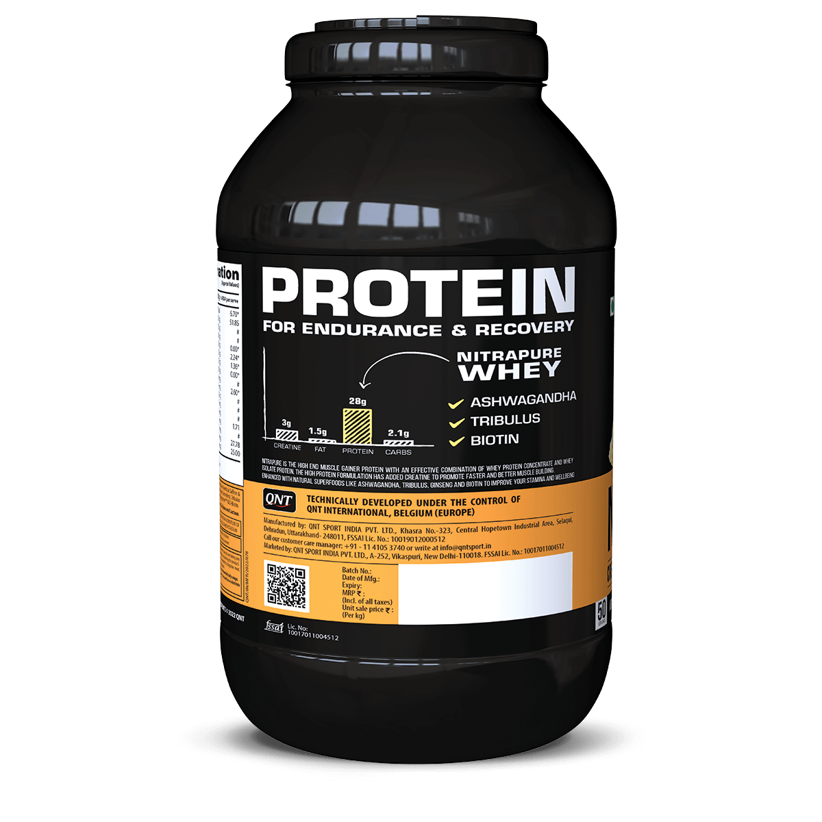 QNT NITRAPURE consists of 28g of protein, having whey protein concentrate as the prime source along with whey protein isolate with a never-before formulation of muscle gain for fast recovery and lean muscle.