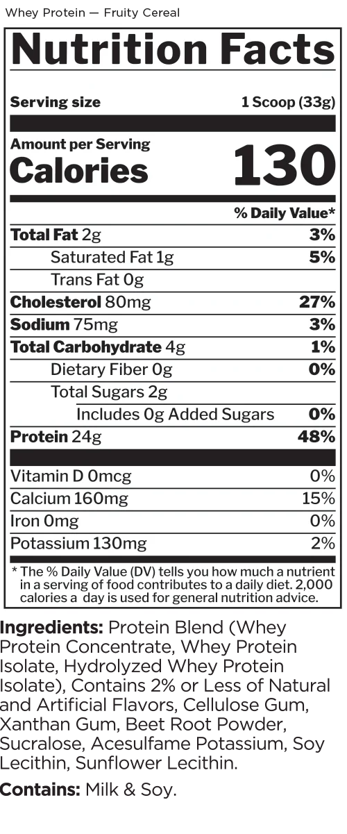 • 100% Whey Protein from 3 sources: concentrates, isolates, and hydrolysates.