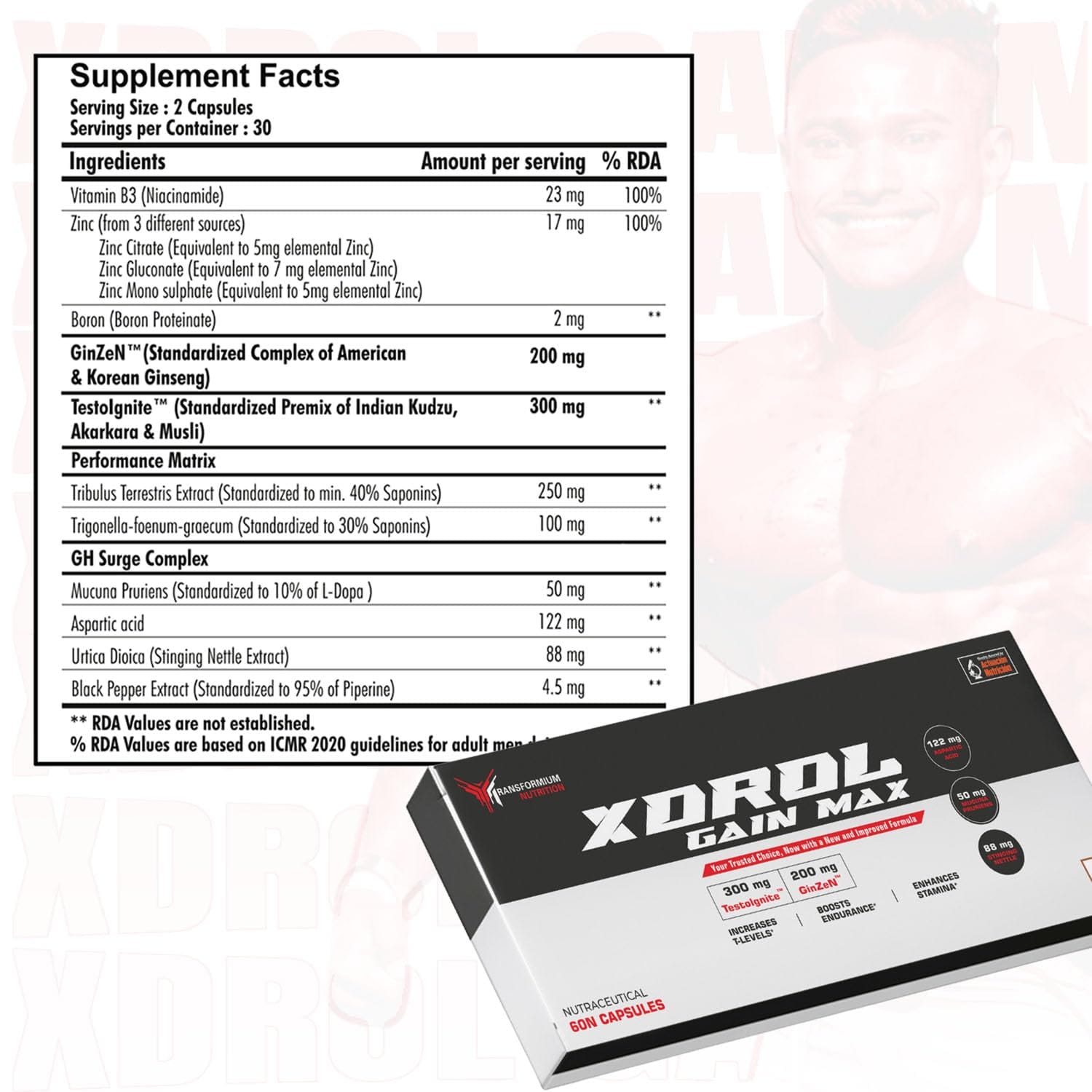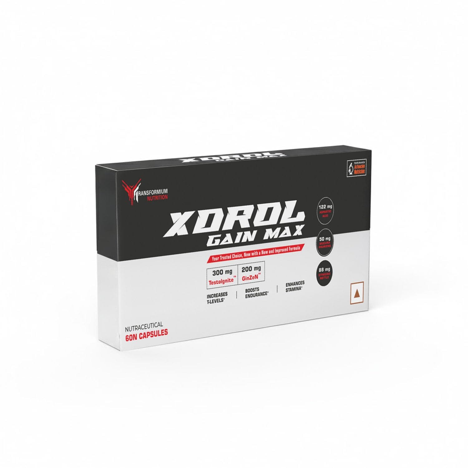 The science-backed key ingredients in X-DROL have been shown to naturally increase testosterone levels. Transformium Nutrition X-Drol  requires no cycling on and off and is formulated with scientifically researched key ingredients, zinc, and boron. X-DROL also contains other well-known ingredients men look for in such products including stinging nettle root, Tribulus, and Trigonella foenum graecum.
