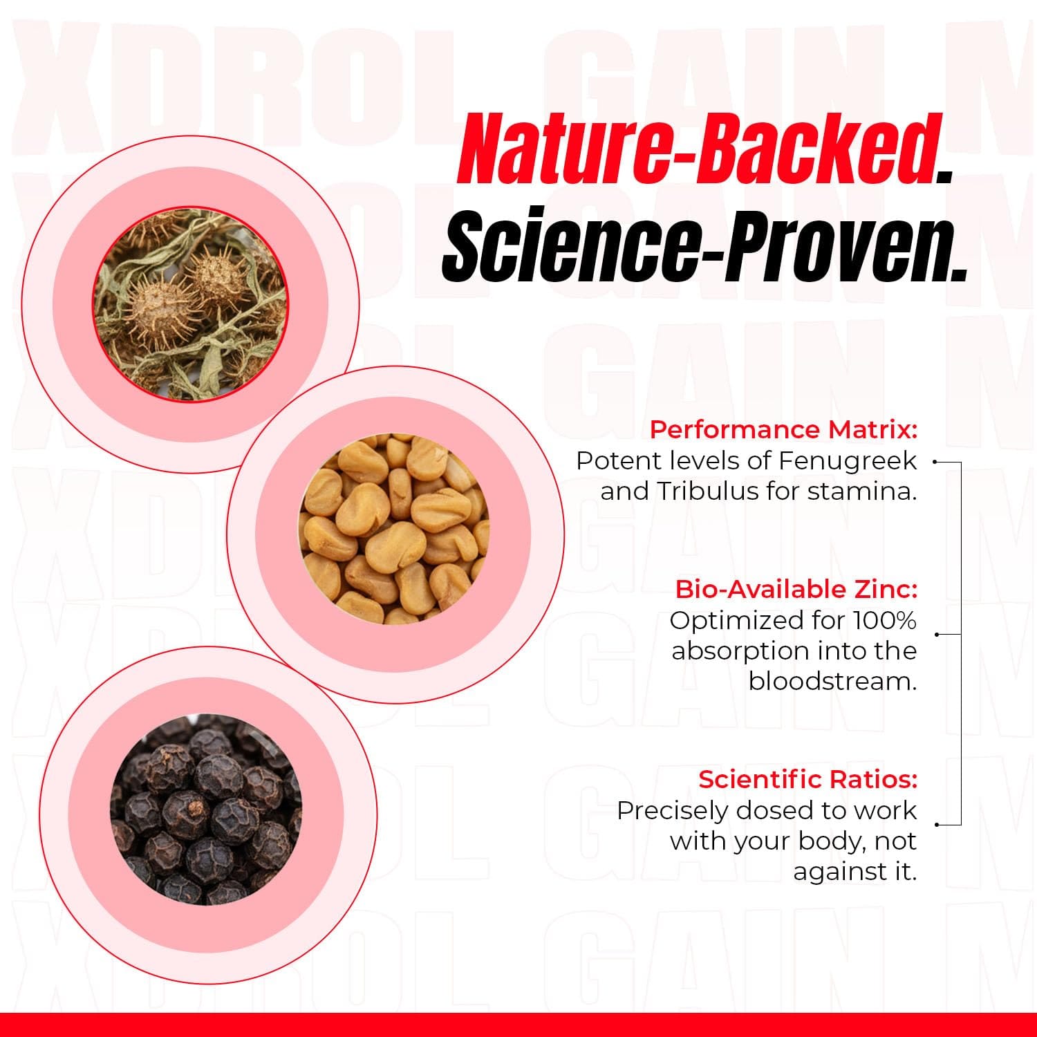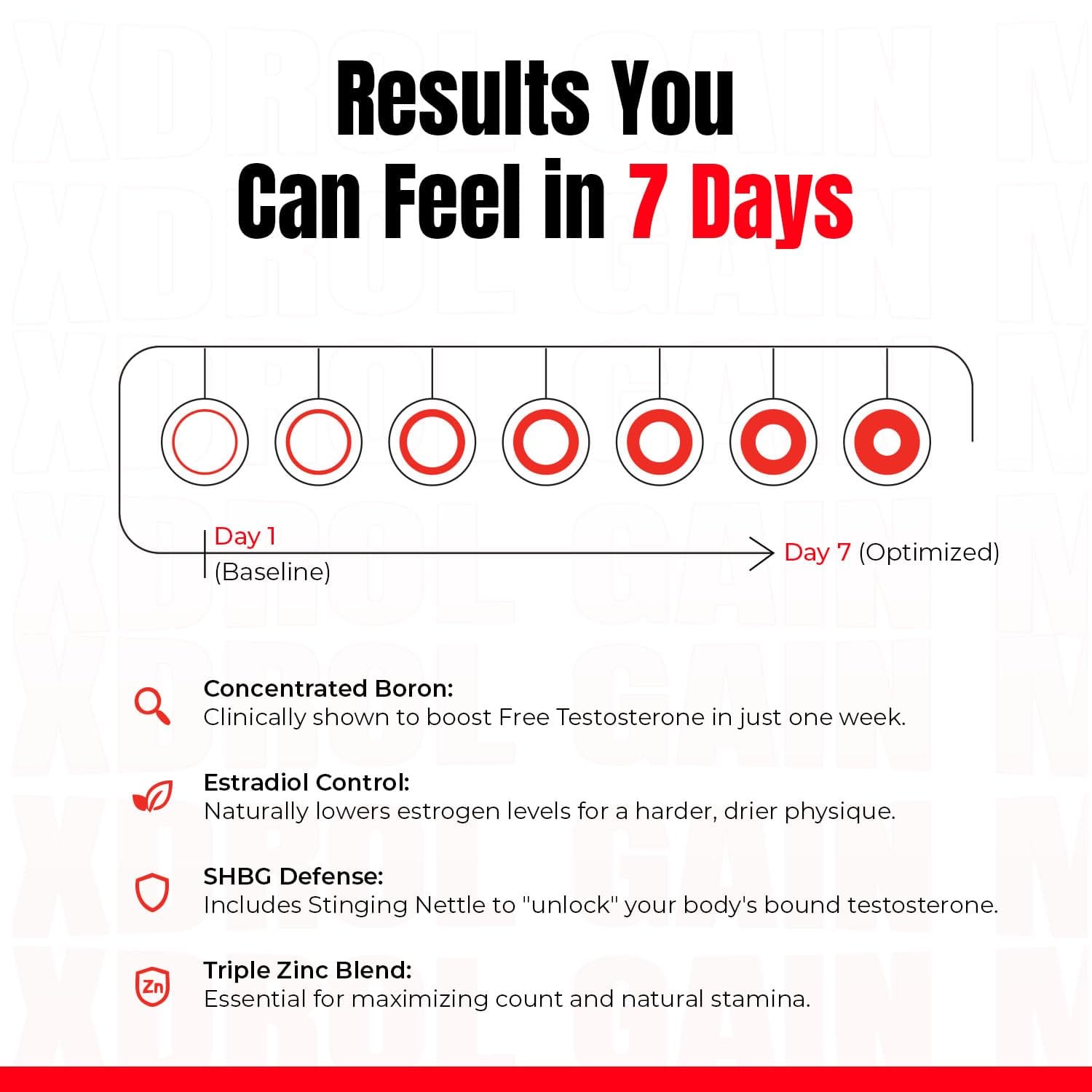 Transformium Nutrition X-Drol is formulated with concentrated and powerful boron that is shown in human clinical research to increase free testosterone and decrease estradiol within just 7 days. Free testosterone is the most active form of testosterone and is critical for initiating the muscle-building process.