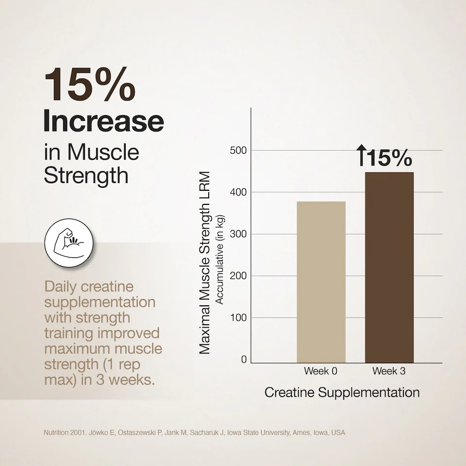 By replenishing ATP levels, creatine improves your ability to train harder and longer. It’s one of the few supplements that consistently improves strength, sprint capacity, and muscular endurance.