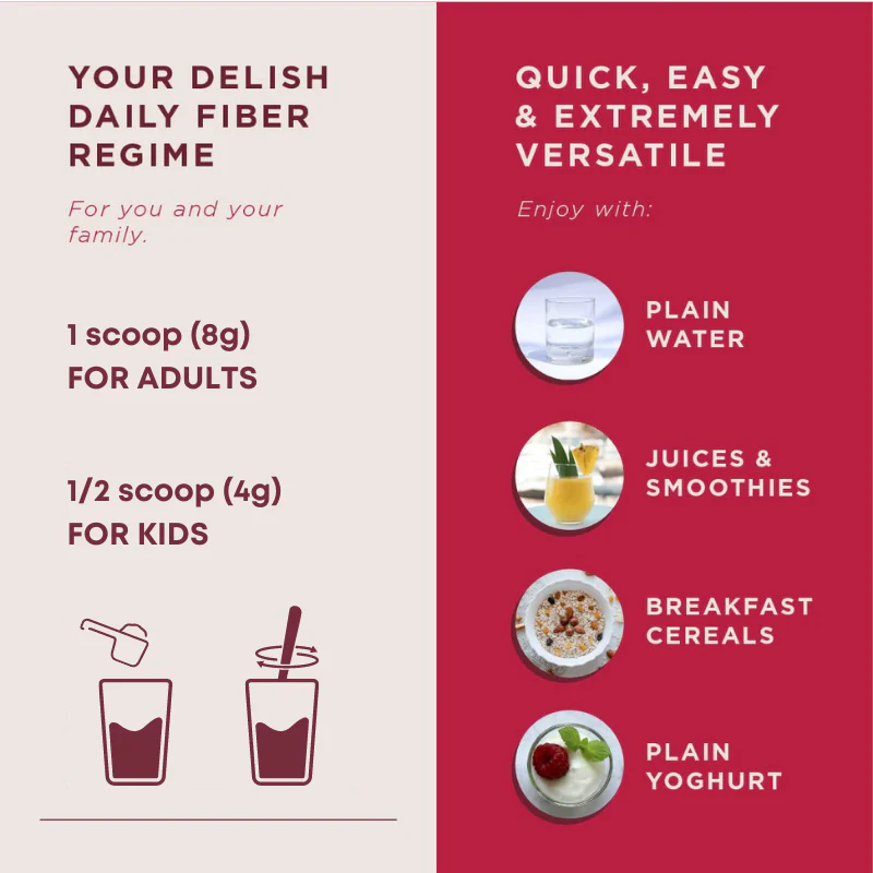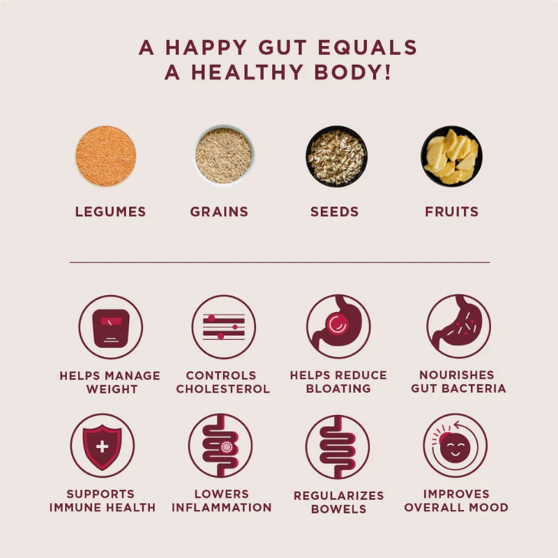 A scientifically-formulated and clinically-tested 100% plant-based dietary fiber for kids & adults to fulfill their daily fiber intake. It is infused with 17 organic superfoods providing the goodness of whole grains, legumes, seeds, fruits, & spices that the body can readily recognize & absorb to enhance the digestive health.