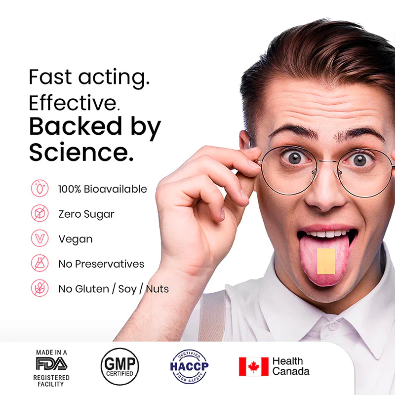 • Convenient, fast-dissolving strip format for quick and efficient absorption.