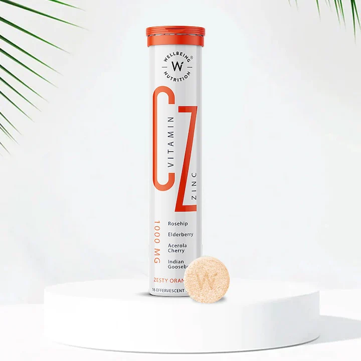Wellbeing Nutrition’s Vitamin C + Zinc tablets are India’s first all-natural and organic Vitamin C and Zinc supplement. Made with nature’s purest ingredients like Indian Gooseberry (Amla), Acerola Cherry, Elderberry, and Rosehip, this potent and powerful formula is the best natural immunity boost supplement for your body. Each tab of Vitamin C + Zinc delivers 100% RDA of these two essential nutrients.