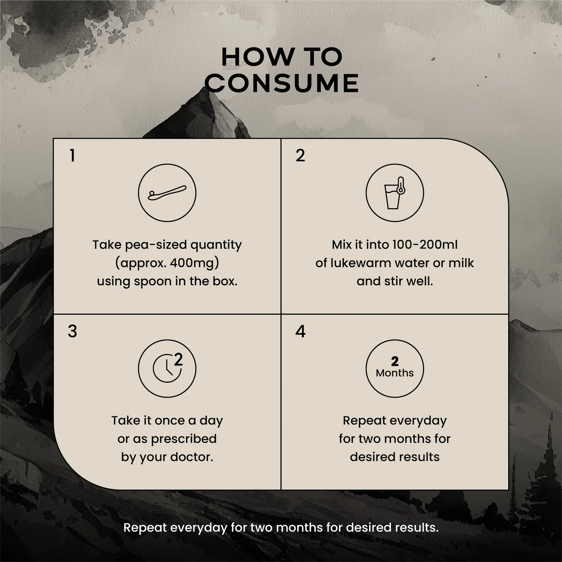 Tap into your full potential with India’s first clinically researched, purified shilajit resin, sourced from 18,000 feet of the Annapurna range of the Himalayas. Along with saffron, cinnamon, and cardamon, this beautiful blend improves your stamina and performance and boosts your vigor within four weeks.