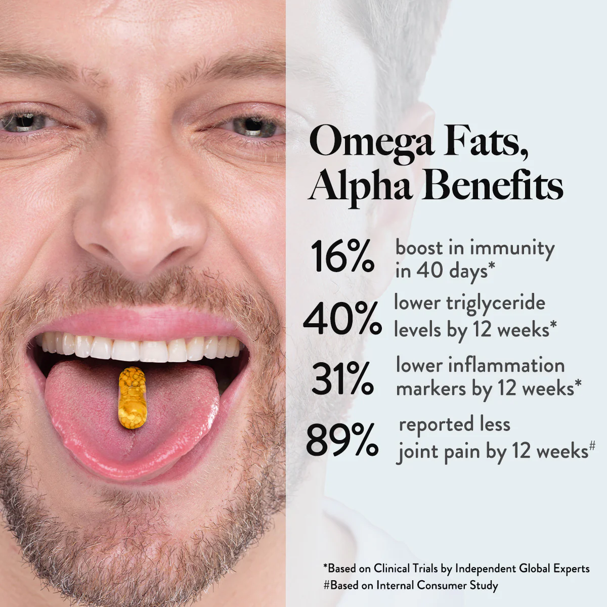 Wellbeing Nutrition Triple Strength Omega-3 uses an exceptionally pure grade of fish oil from deep sea salmon. You get 83% omega-3 fats in 2 capsules as compared to others that only pack in 30% to 60% omega-3. We use molecular distillation to ensure our fish oil is heavy metal-free. An independent, certified third-party lab confirms the same. For a pleasant experience, we have enhanced our product with mint to minimise fishy burps and aftertaste.