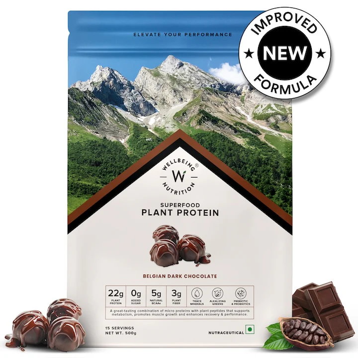 Our premium vegan protein powder, a delicious blend of Belgian Dark Chocolate flavour, is meticulously crafted to fuel your active lifestyle. Packed with 22g of plant-based protein per serving, it’s the perfect balance of multi-source protein for muscle recovery, weight management, and lasting energy. Infused with alkalizing super greens, trace minerals, digestive enzymes, along with prebiotics and probiotics, our expertly curated protein delivers clean, complete nutrition in every scoop for your body to perform at its best.