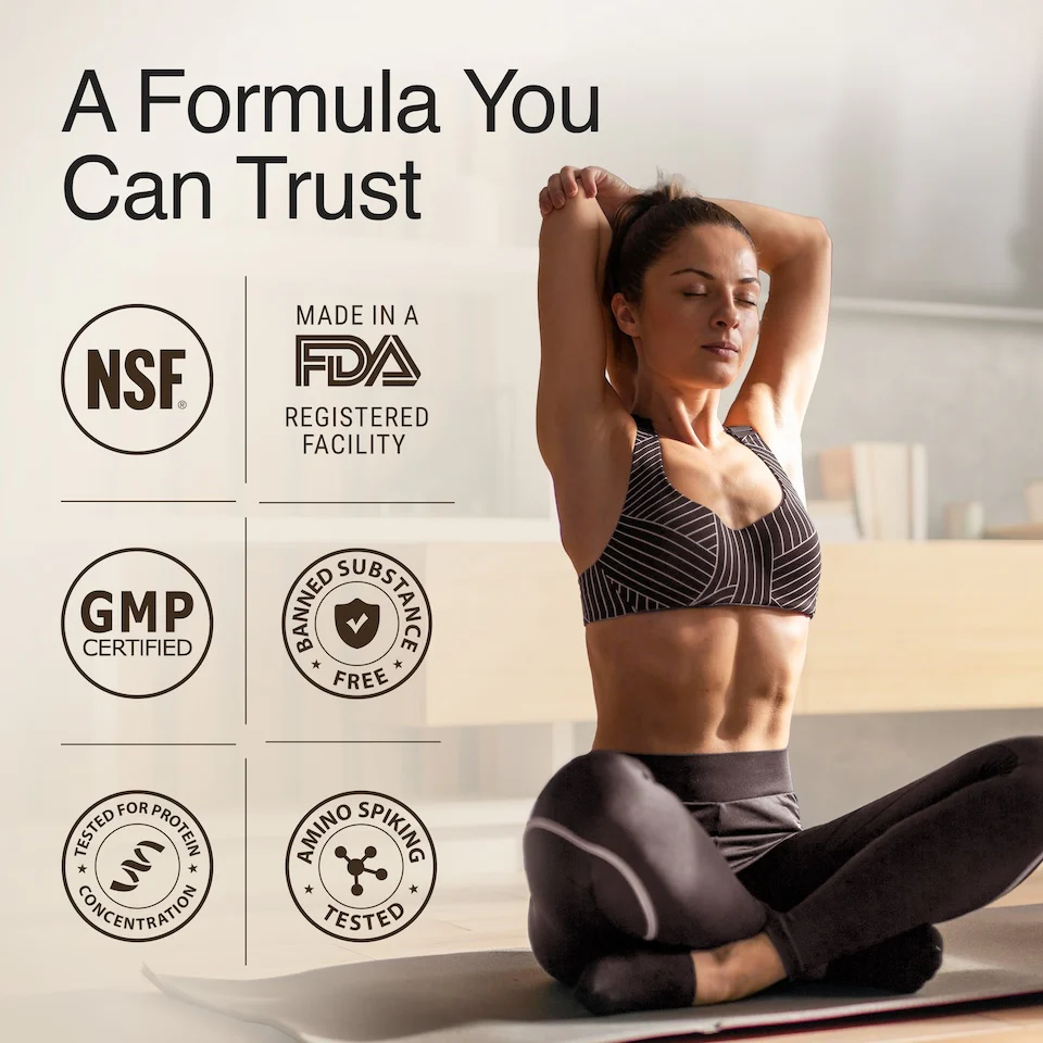 Our ultra-pure, fast-absorbing, non-denatured microfiltered whey isolate is sourced directly from milk and is not a by-product of cheese. Processed at low temperatures without the use of acids or bleach, resulting in a purer, more intact protein. Infused with the world’s finest alkalized cocoa sourced from Switzerland, naturally sweetened with monk fruit, and instantized with sunflower lecithin, our formula features clinically proven Velositol® – a complex of two forms of amylopectin & chromium that doubles protein synthesis in 8 weeks. Natural digestive enzymes Bromelain from Pineapple & Papain from Papaya help break down protein for easier digestion and 4B CFU of probiotics, Lactobacillus acidophilus and Bifidobacterium longum improve gut microflora.