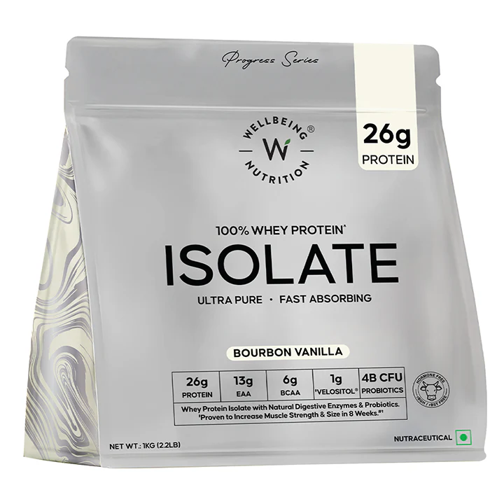 Introducing India’s first Whey protein isolate with Velositol®clinically proven to improve muscle strength & endurance in 8 weeks. Our ultra-pure, non-denatured Whey protein delivers 26g protein, 13g EAA, & 6g BCAA with 4 Billion CFU of probiotics & digestive enzymes for a gut-friendly dose of goodness without any bloating. Sweetened with zero-calorie monk fruit, our decadent dark chocolate-flavoured whey protein is instantized for a smooth, light texture—perfect for fueling workouts, recovery, and daily nutrition.